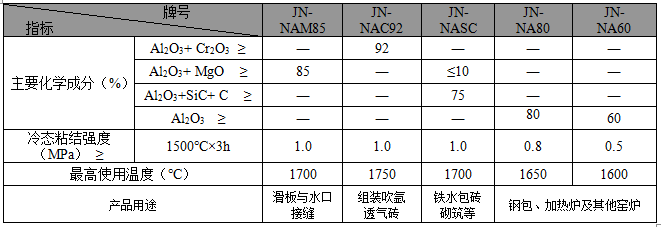 ·JN系列耐火泥主要理化指標·