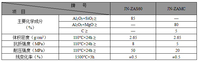 ·JN系列中間包水口座磚主要理化指標(biāo)·